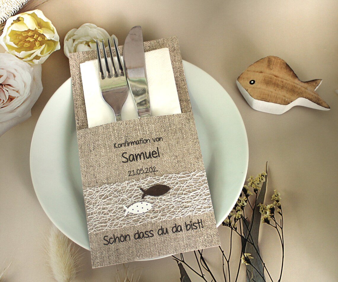 Bestecktasche Leinenoptik zur Konfirmation, Kommunion oder Taufe, personalisiert, Design 5004Bestecktasche Leinenoptik zur Konfirmation, Kommunion oder Taufe, personalisiert, Design 5004