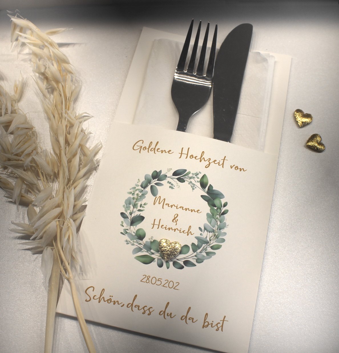 Bestecktasche, Bestecktasche Goldene Hochzeit, Goldene Hochzeit, Servietten, Tischdekoration