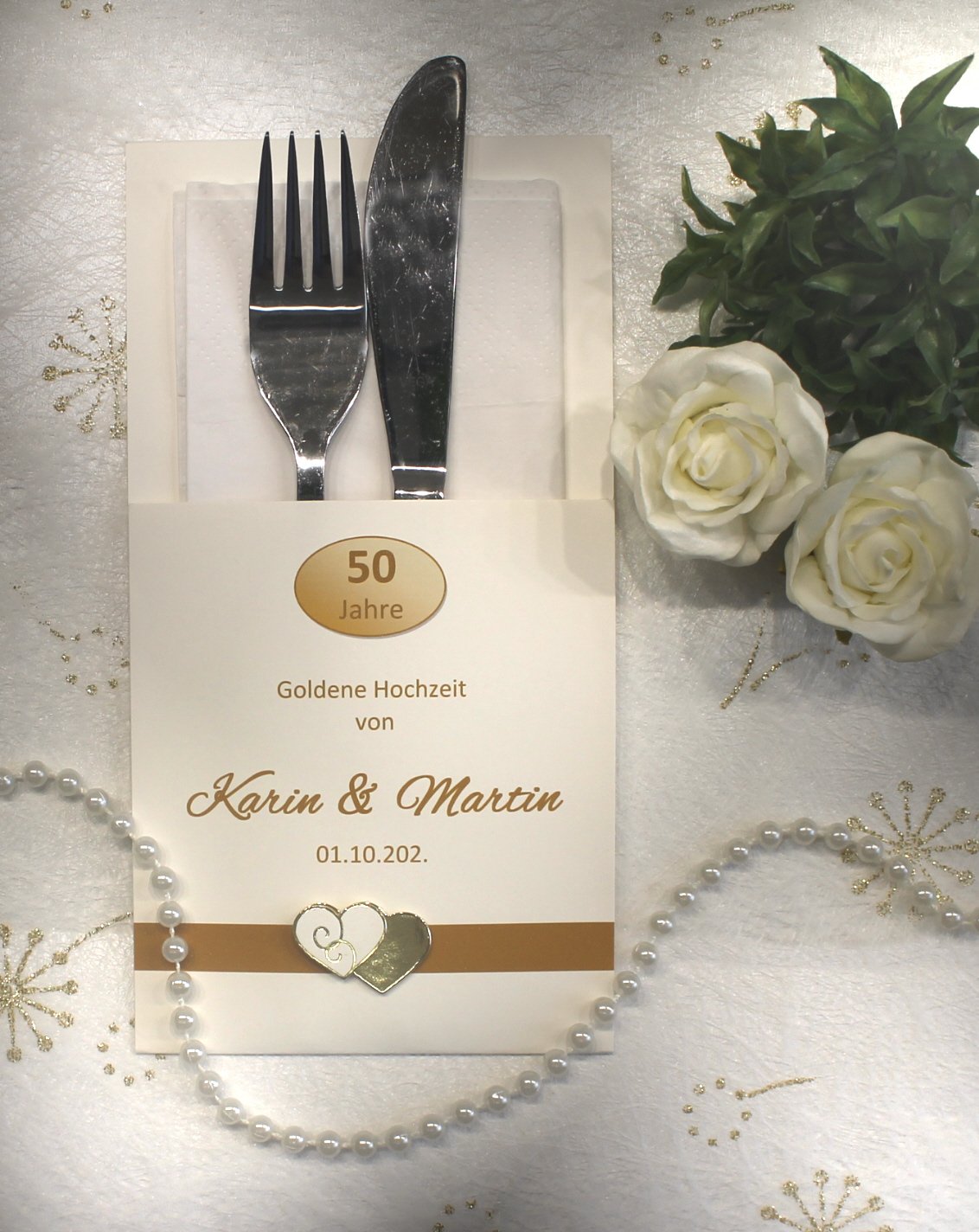 Bestecktasche, Bestecktasche Goldene Hochzeit, Goldene Hochzeit, Servietten, Tischdekoration