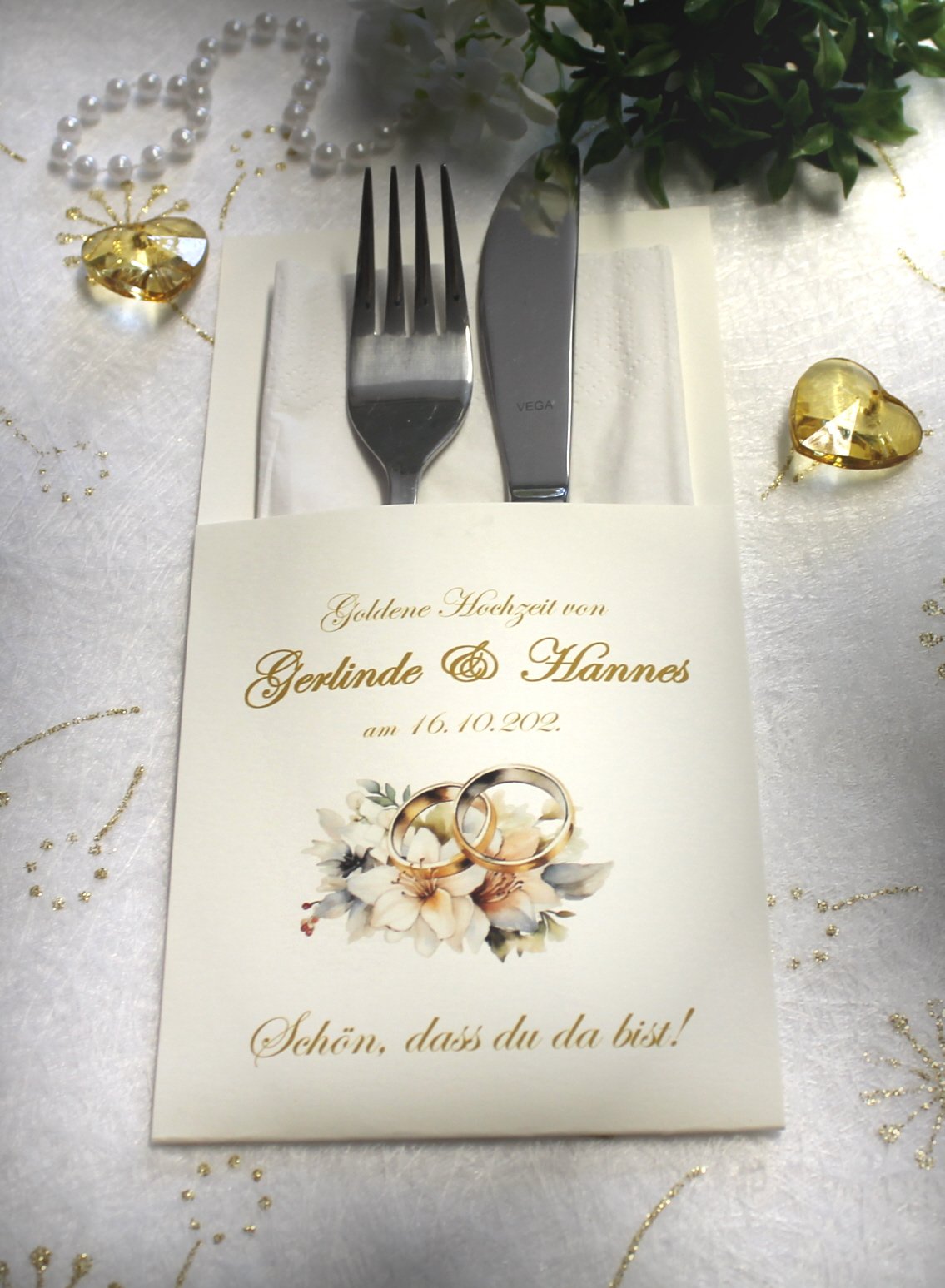Bestecktasche, Bestecktasche Goldene Hochzeit, Goldene Hochzeit, Servietten, Tischdekoration