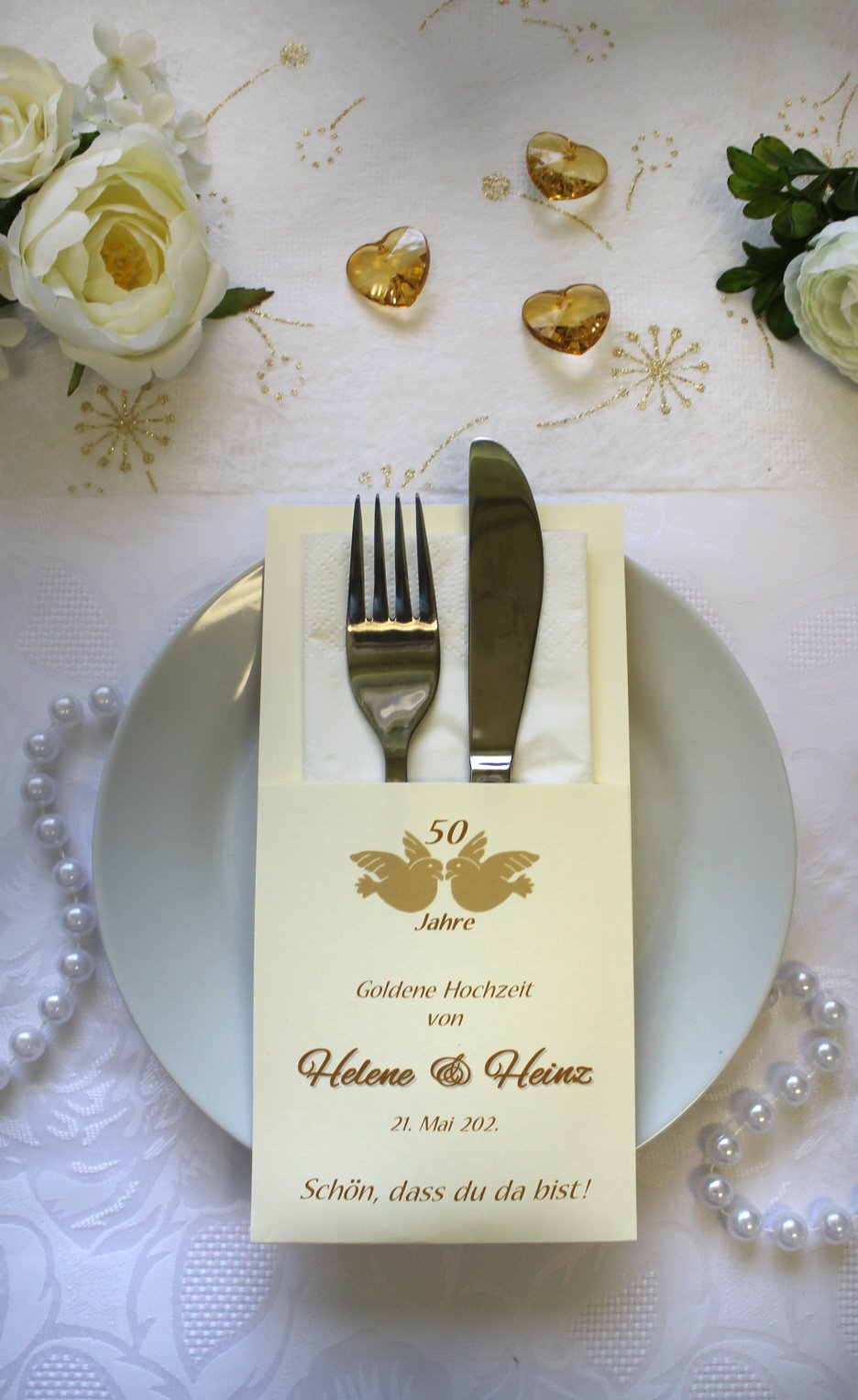 Bestecktasche, Bestecktasche Goldene Hochzeit, Goldene Hochzeit, Servietten, Tischdekoration