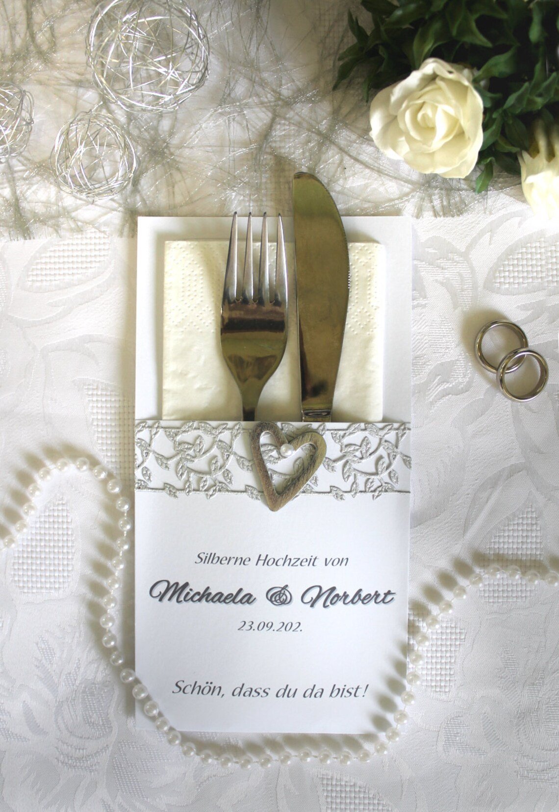 Bestecktasche, Bestecktasche Silberne Hochzeit, Silberne Hochzeit, Servietten, Tischdekoration