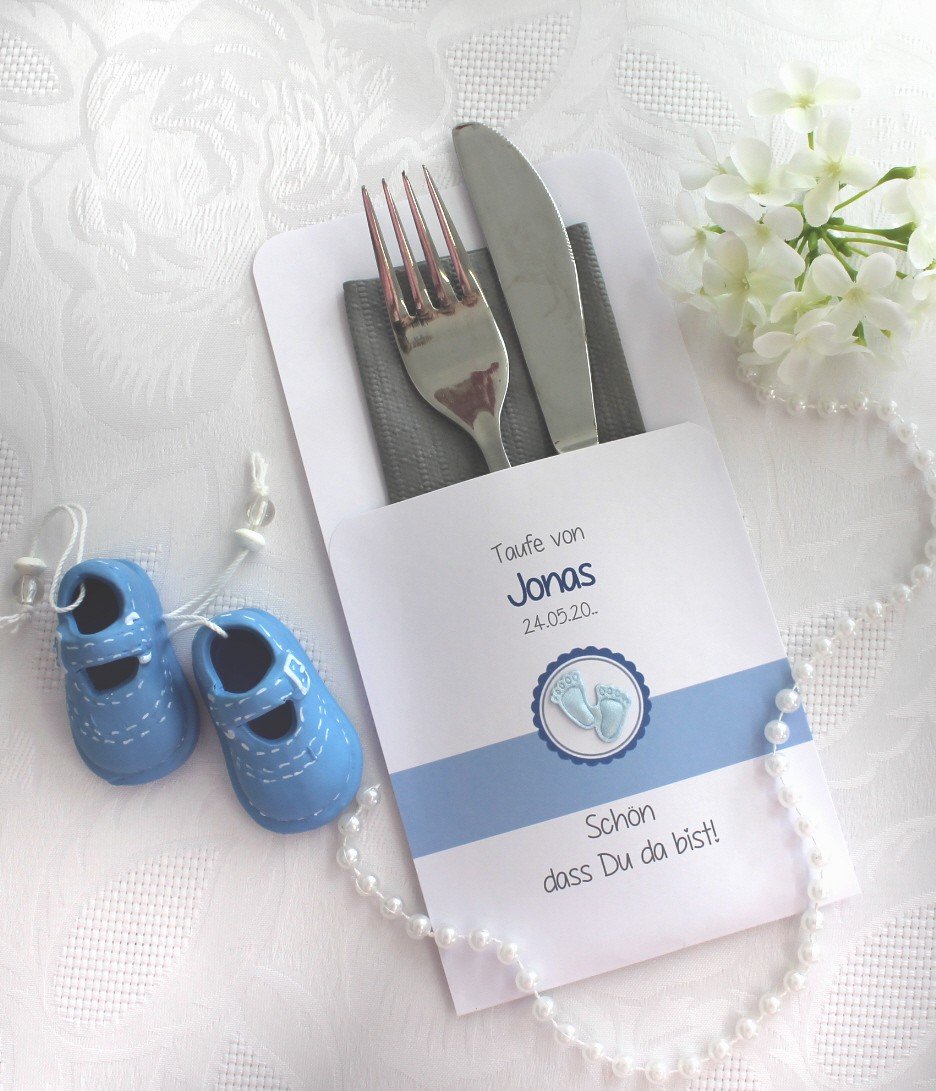 Unsere Bestecktaschen sind nicht nur ein elegantes Detail, sondern ein echter Blickfang auf jedem festlich gedeckten Tisch. Sie verbinden Stil und Funktionalität auf charmante Weise – ideal als Tischdekoration und zugleich als persönliches Highlight für Ihre Gäste. Jede Bestecktasche wird mit Liebe zum Detail gefertigt und kann perfekt mit dem Design Ihrer Gastgeschenk-Kerzen kombiniert werden. So entsteht ein harmonisches Gesamtbild auf Ihrer festlichen Tafel.