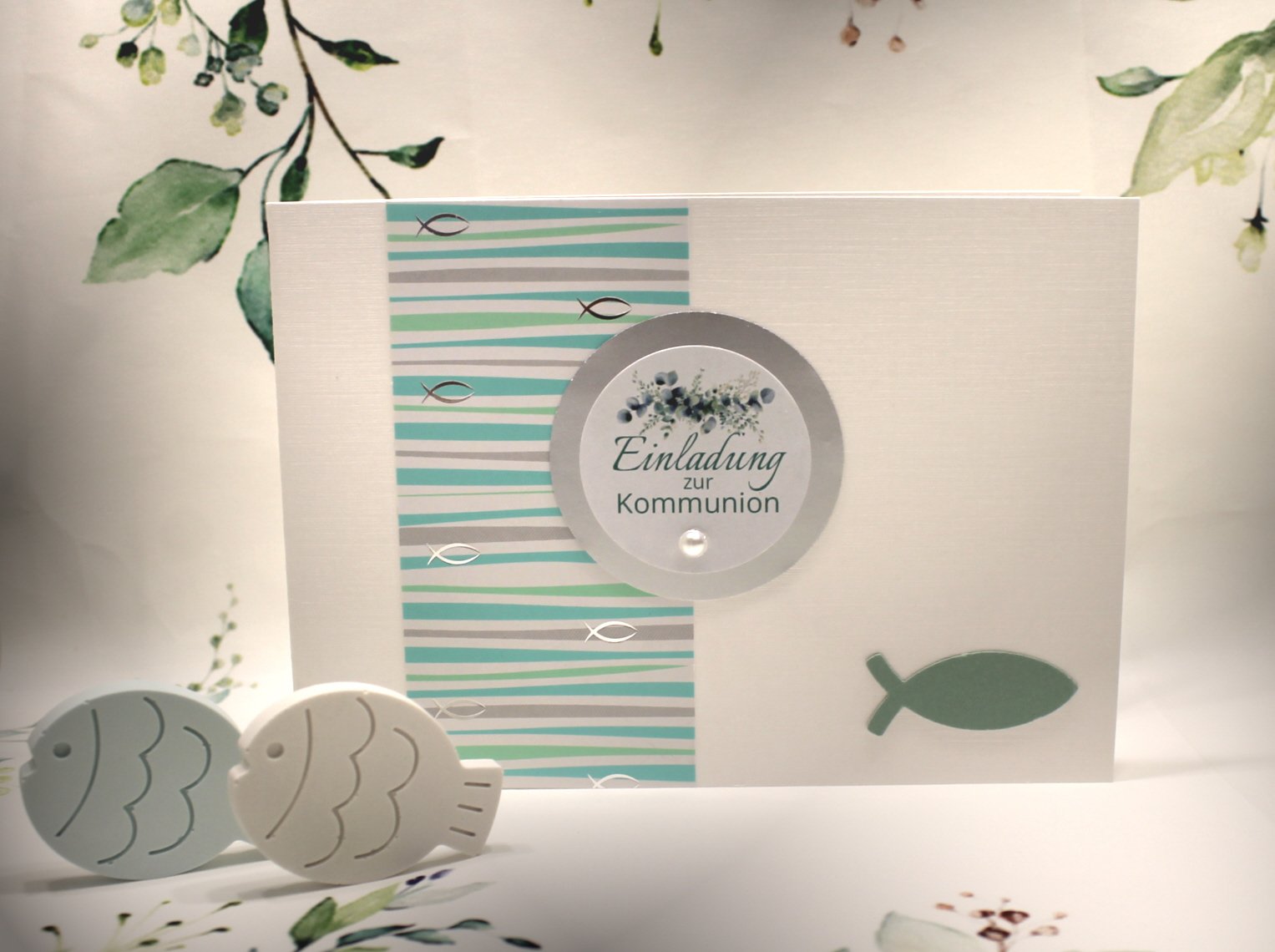 Einladungskarte Konfirmation, Einladung Kommunion, Einladungskarten günstig online kaufen, Einladungskarten mit Fischmotiv