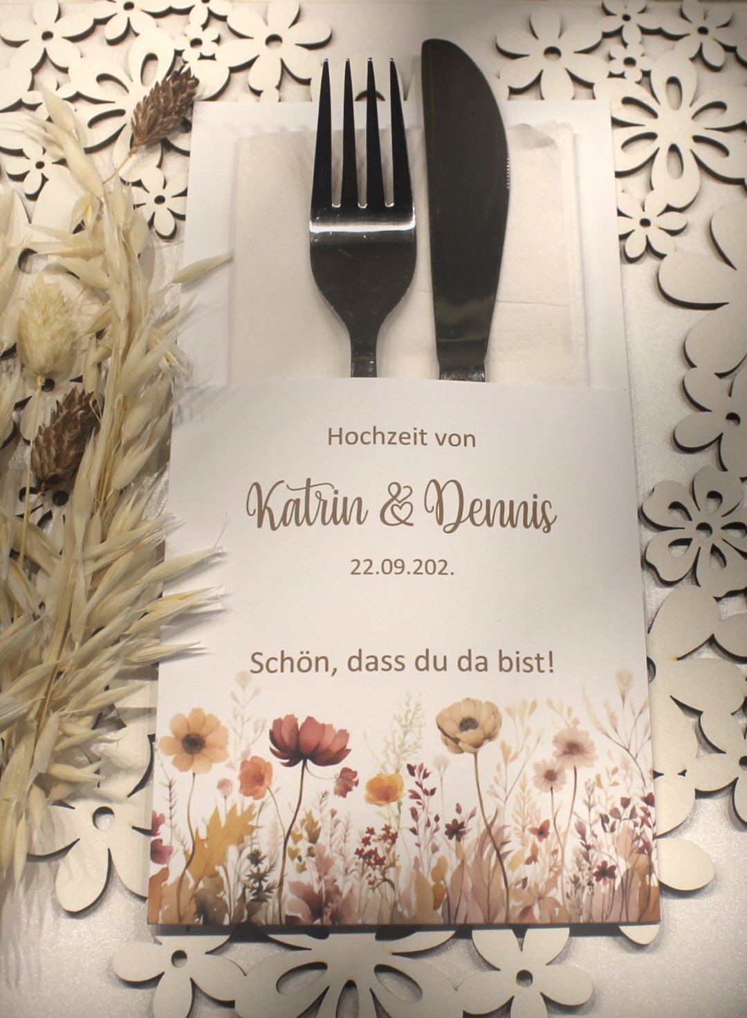 bedruckt mit ihrem Anlass, Namen sowie dem Festdatum