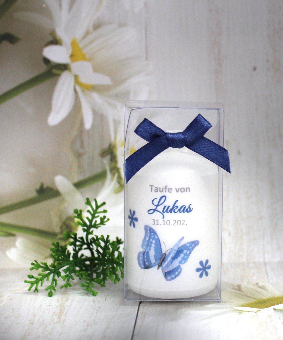 Gastgeschenk Kerze „Schmetterling“ wahlweise im Organzasäckchen oder in der Geschenkschachtel mit Schleife Design 215