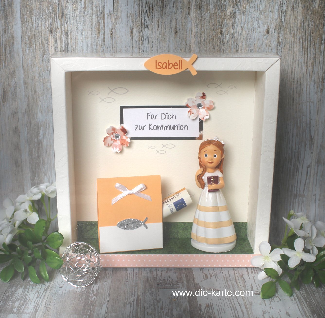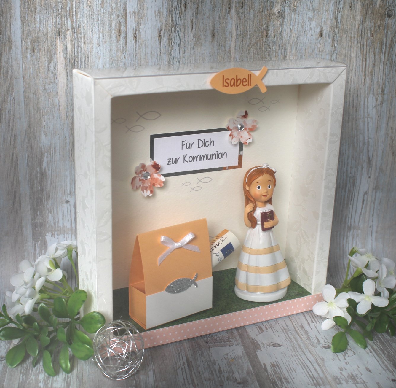 Geschenkerahmen zur Kommunion, Konfirmation oder Firmung – handgemachte Geldgeschenk-Verpackung mit Figur