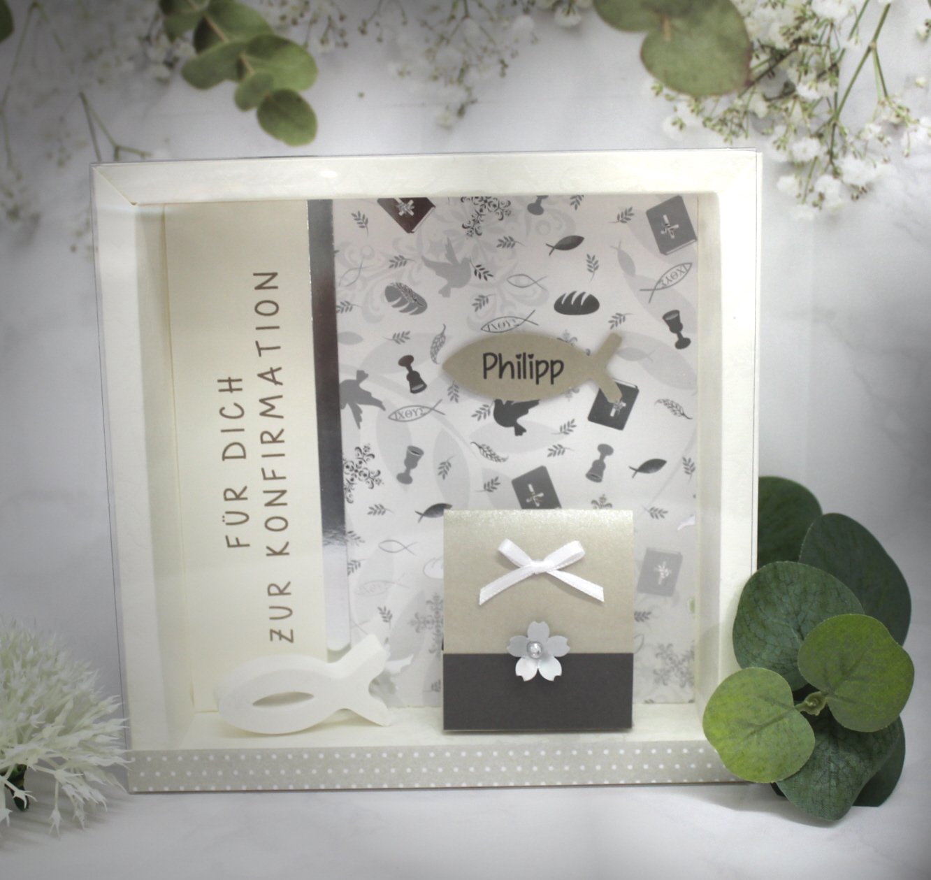 Geldgeschenk Konfirmation, Geschenkschachtel, Geschenkerahmen Kommunion, personalisiertes Geschenk