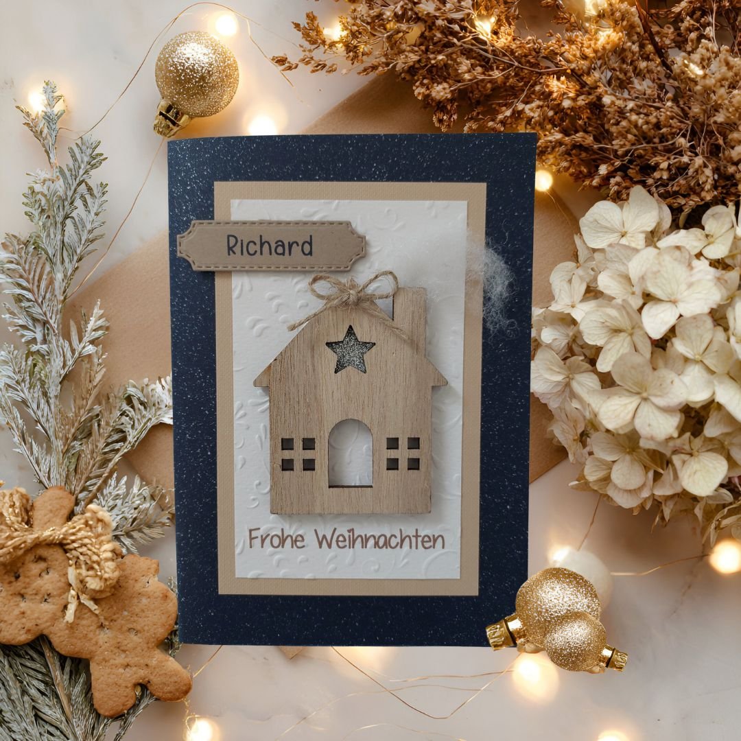 Handgemachte Weihnachtskarte mit Umschlag auf Wunsch auch als Geldgeschenk. Diese liebevoll handgemachte Weihnachtskarte ist mehr als nur ein Gruß – sie ist eine kleine Aufmerksamkeit mit Herz! Jede Karte wird mit viel Sorgfalt gestaltet und enthält auf Wunsch einen kleinen Umschlag im Inneren, perfekt für ein Geldgeschenk. So wird Ihr Weihnachtsgruß zu einem persönlichen Highlight unter dem Weihnachtsbaum.