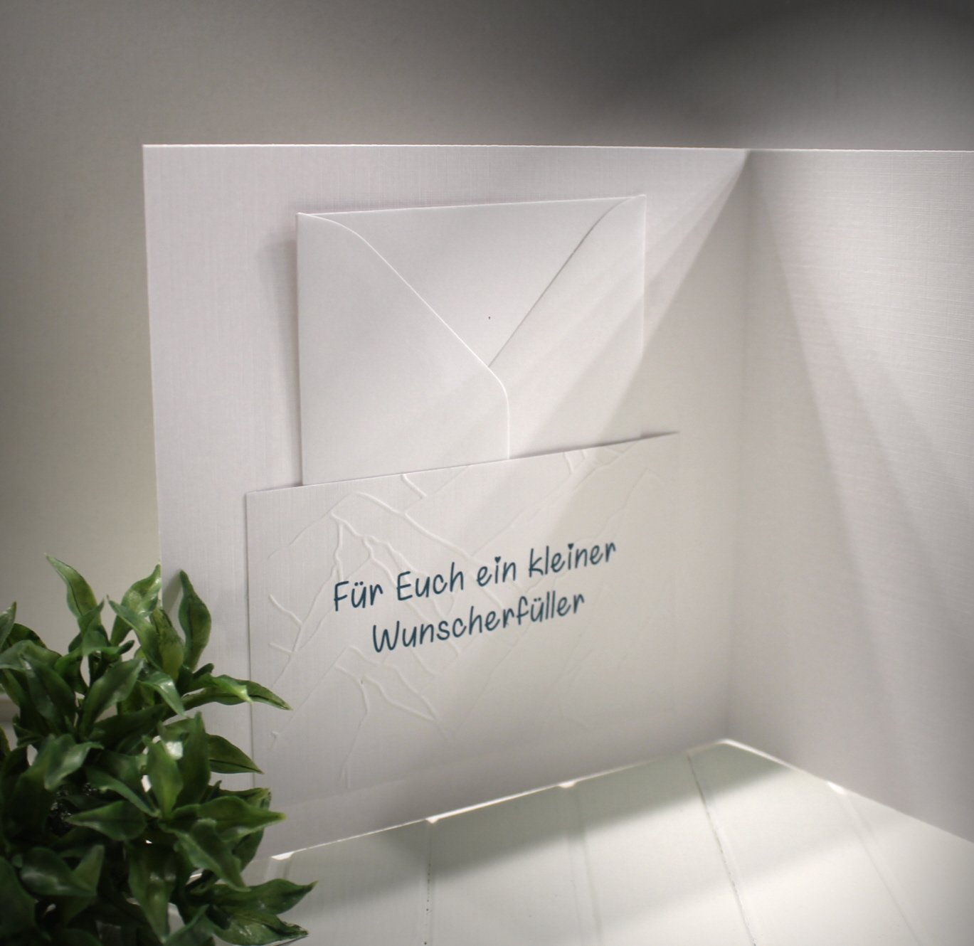 Diese Karte ist mehr als nur ein Glückwunsch – sie ist ein wertvolles Erinnerungsstück, das Emotionen weckt und Freude schenkt. Ideal, um Geldgeschenke liebevoll zu verpacken und gleichzeitig eine persönliche Note zu hinterlassen. Ihr elegantes Design und die hochwertigen Materialien machen sie zu einem besonderen Erinnerungsstück. Gefertigt aus hochwertigem, stabilem Karton besticht die Karte nicht nur durch ihre edle Haptik, sondern auch durch das stilvolle Design, das perfekt zu jedem Hochzeitsstil passt. Der passende Umschlag ist inklusive, sodass dein persönlicher Gruß direkt bereit zum Verschenken ist.