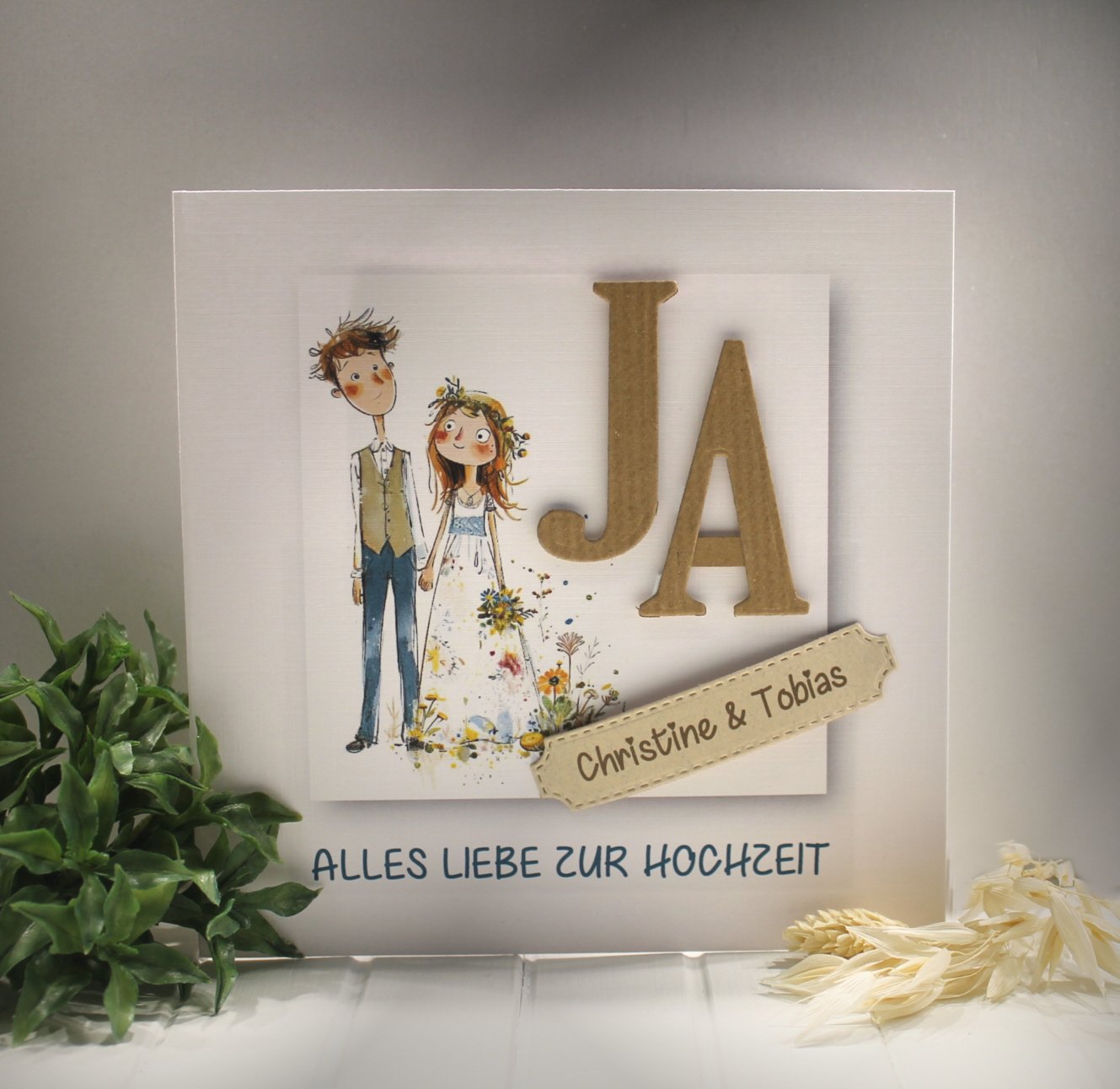 Glückwunschkarte zur Hochzeit, Brautpaar "JA" mit Personalisierung und auf Wunsch als Geldgeschenk Design 141Glückwunschkarte zur Hochzeit, Brautpaar „JA“ mit Personalisierung und auf Wunsch als Geldgeschenk Design 141
