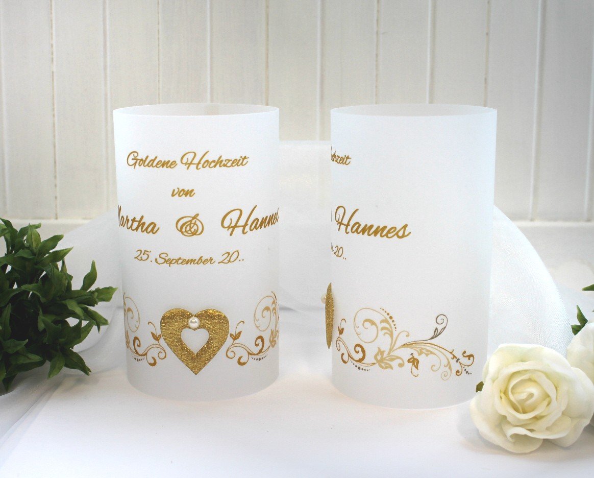Lichthülle, Windlicht Pergament "Zur goldenen Hochzeit" mit goldenem Herz Design 403Lichthülle, Windlicht Pergament „Zur goldenen Hochzeit“ mit goldenem Herz Design 403