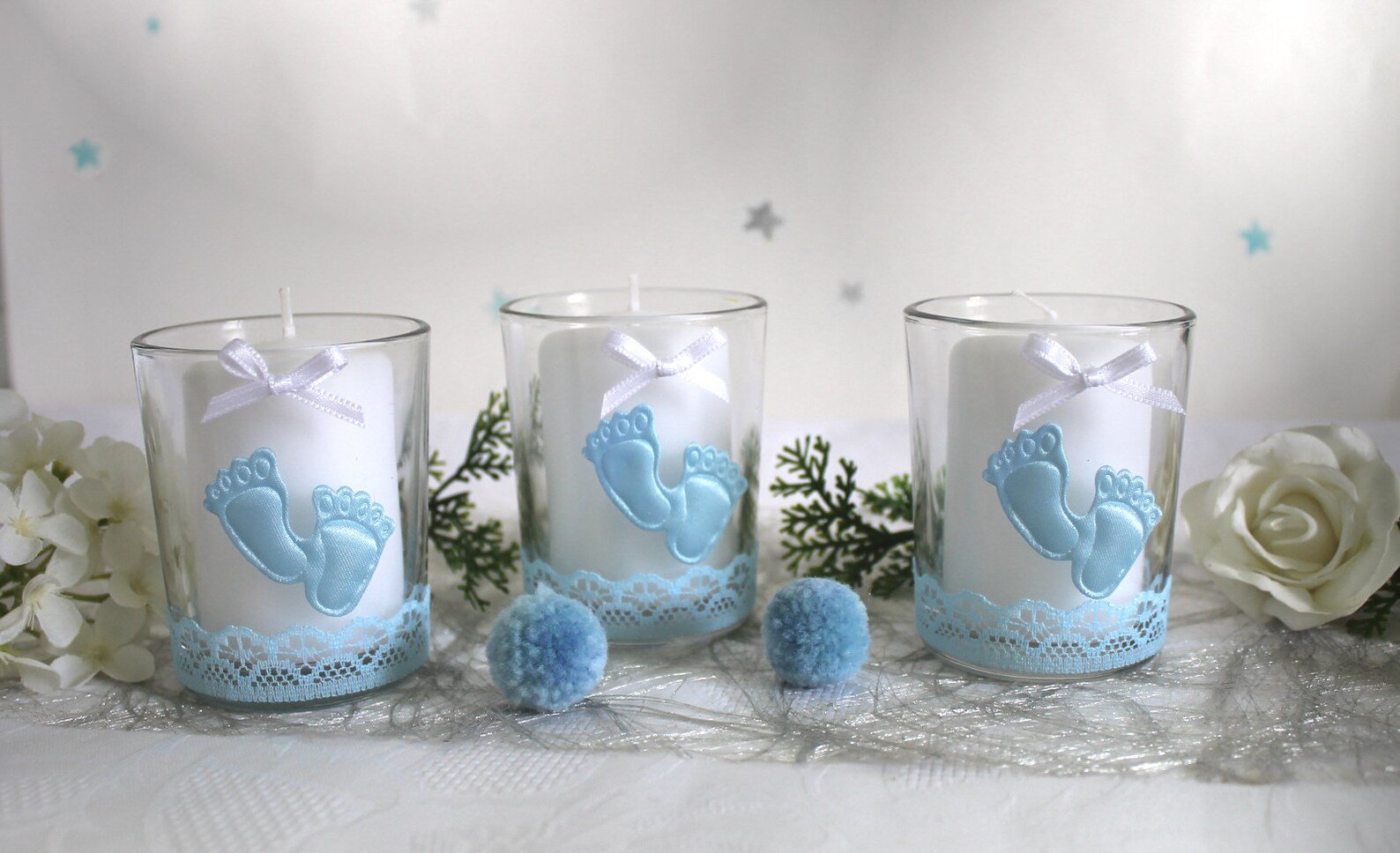 Sie sind noch auf der Suche nach einer liebevollen Tischdekoration für die Taufe Ihres Kindes? Dann ist unser 3er Set Dekogläschen im Design „Kleine Füße“ genau das Richtige!